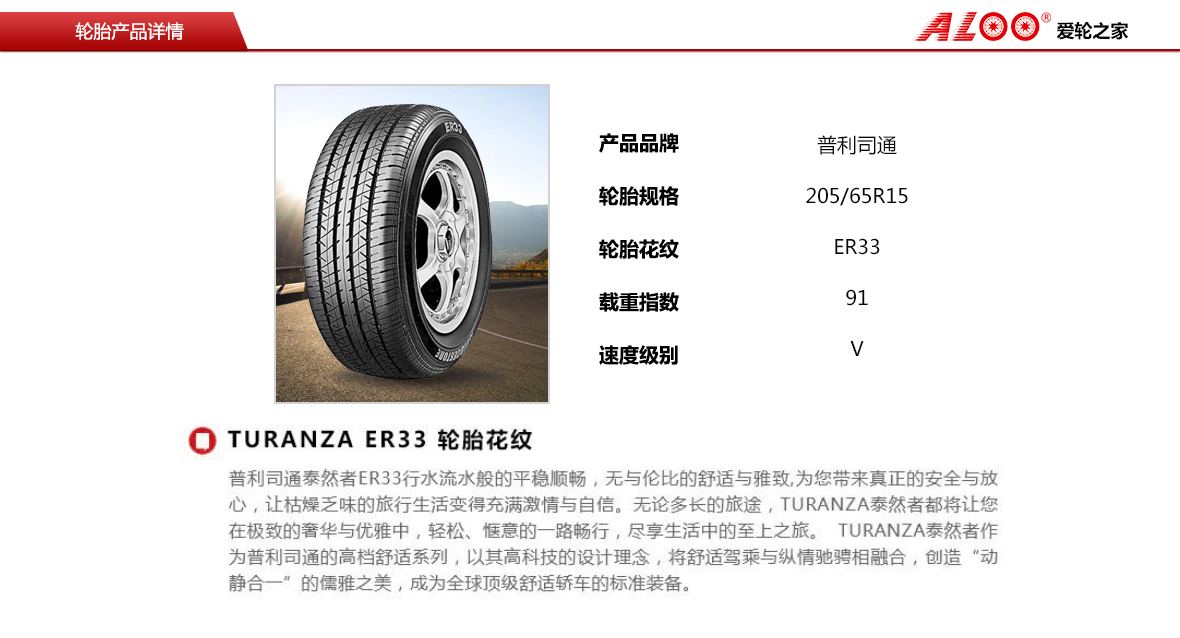 普利司通 TURANZA ER33 205/65R15 _轮胎产品_爱轮之家 | 移动轮胎超市 | 移动换胎
