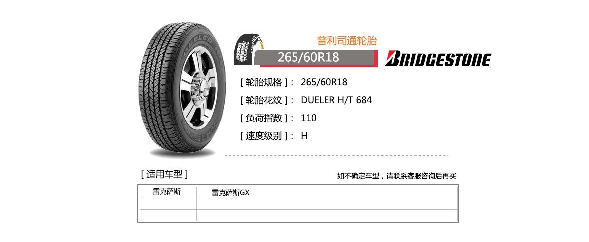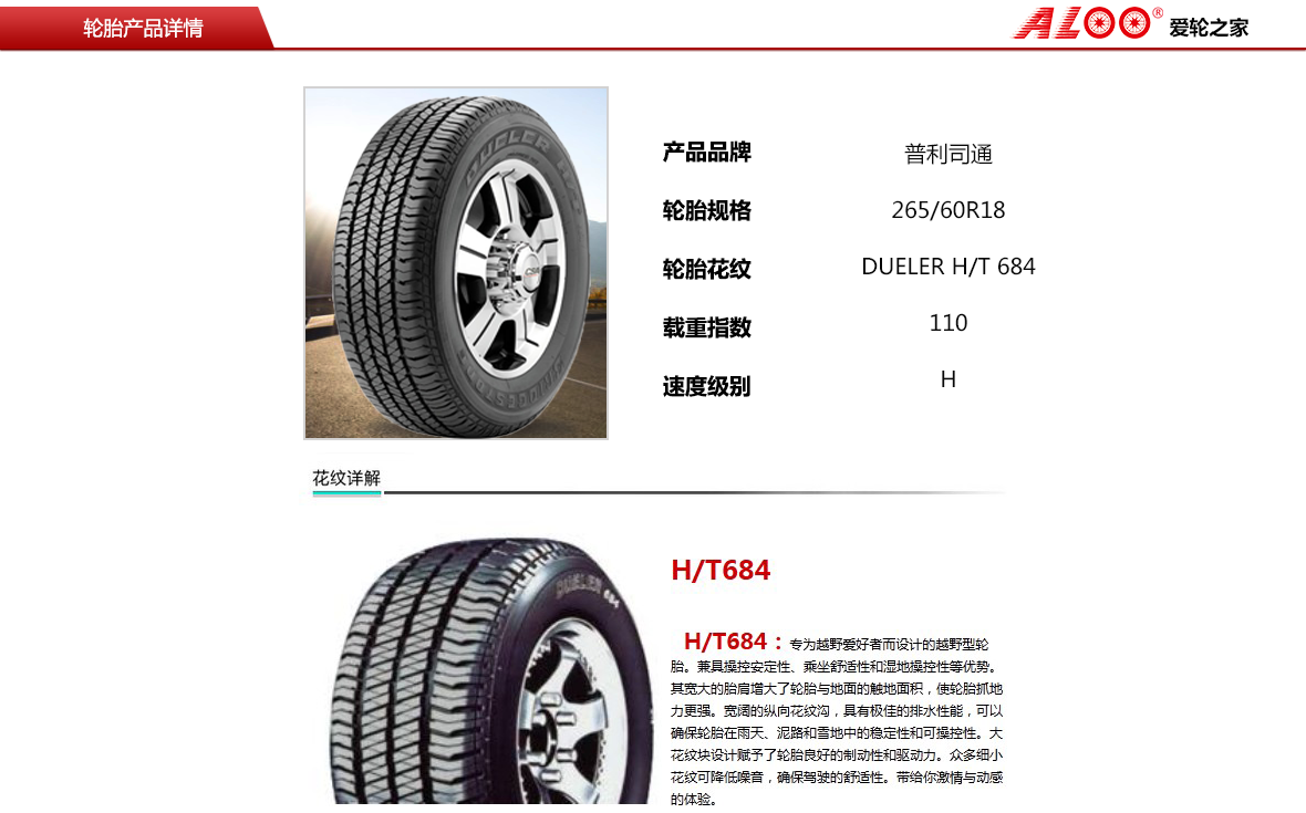 普利司通 DUELER H/T 684 265/60R18_轮胎产品_爱轮之家 | 移动轮胎超市 | 移动换胎