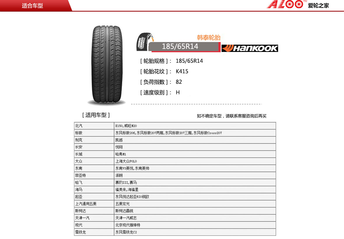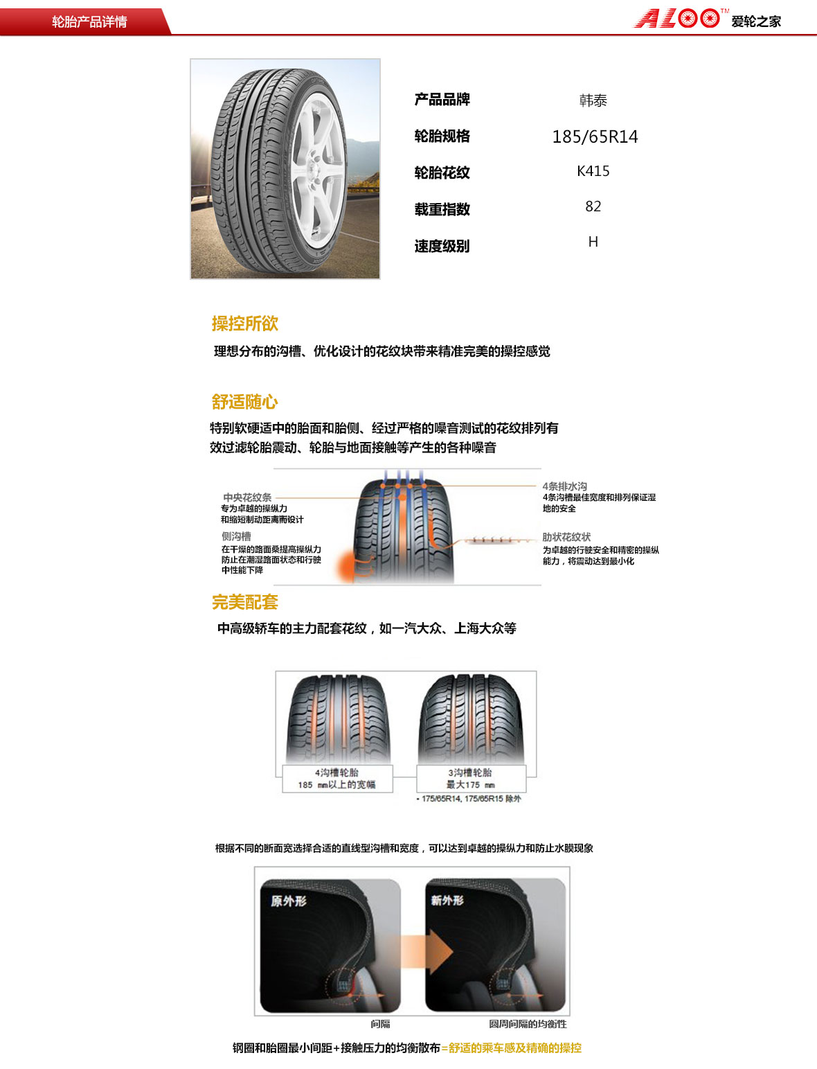 韩泰 K415 185/65R14_轮胎产品_爱轮之家 | 移动轮胎超市 | 移动换胎