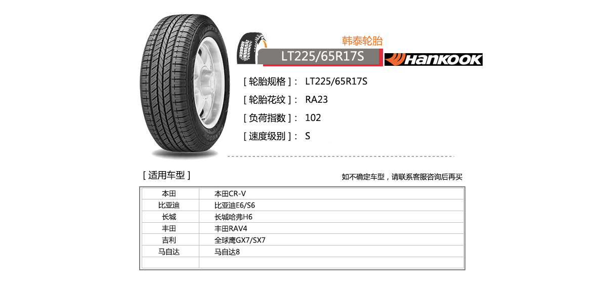 韩泰 RA23 225/65R17_轮胎产品_爱轮之家 | 移动轮胎超市 | 移动换胎