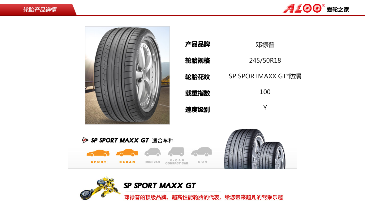 邓禄普 SP SPORT MAXX GT RSC * 防爆带星 245/50R18 100Y_轮胎产品_爱轮之家 | 移动轮胎超市 | 移动换胎