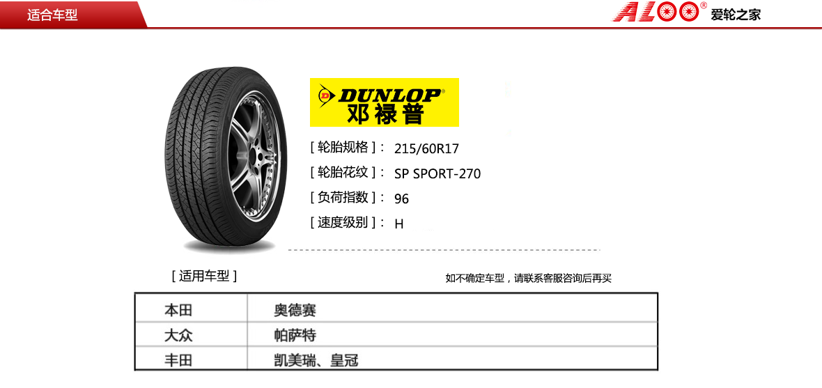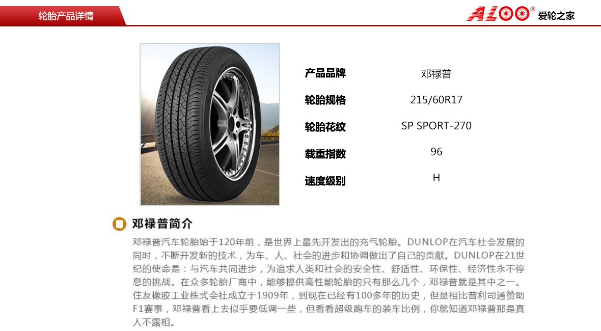 邓禄普 SP SPORT 270 215/60R17_轮胎产品_爱轮之家 | 移动轮胎超市 | 移动换胎