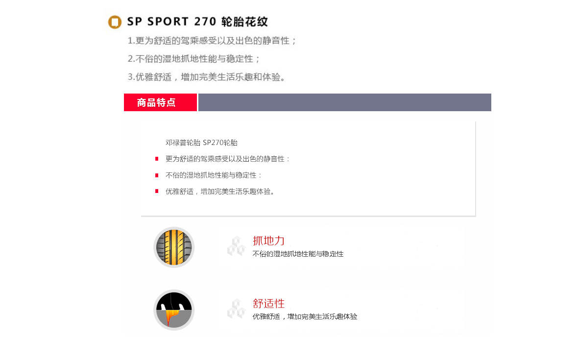 首页 > 轮胎产品 > 邓禄普 SP SPORT 270 215/60R17