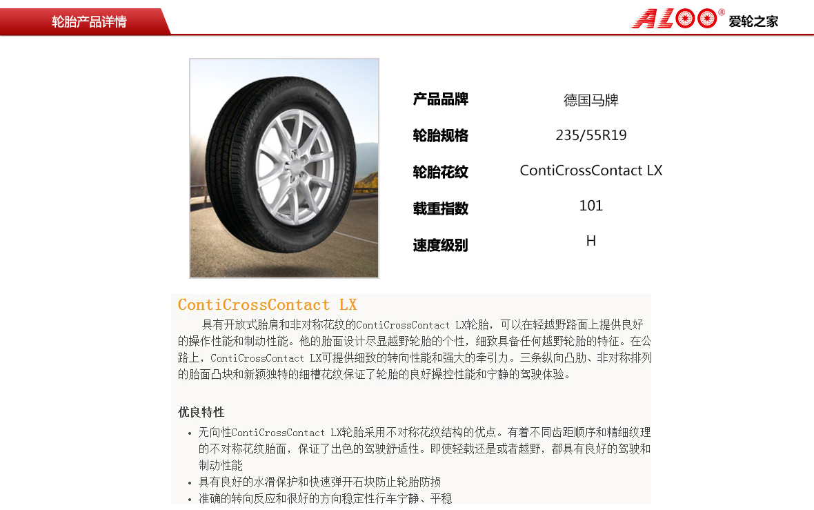 马牌 ContiCrossContact LX 235/55R19_轮胎产品_爱轮之家 | 移动轮胎超市 | 移动换胎
