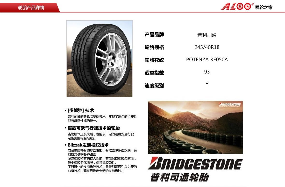 普利司通 POTENZA RE050A RFT 可缺气行驶 (进口)245/40R18 93Y_轮胎产品_爱轮之家 | 移动轮胎超市 | 移动换胎