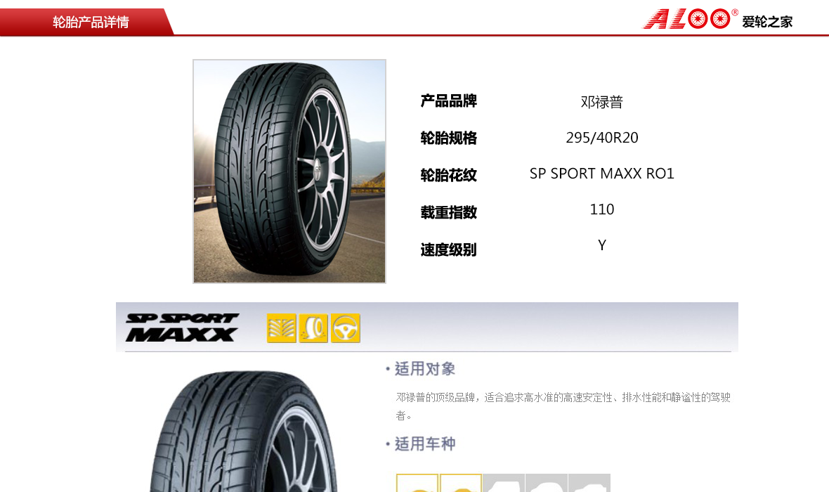 邓禄普 SP SPORT MAXX RO1 295/40R20_轮胎产品_爱轮之家 | 移动轮胎超市 | 移动换胎