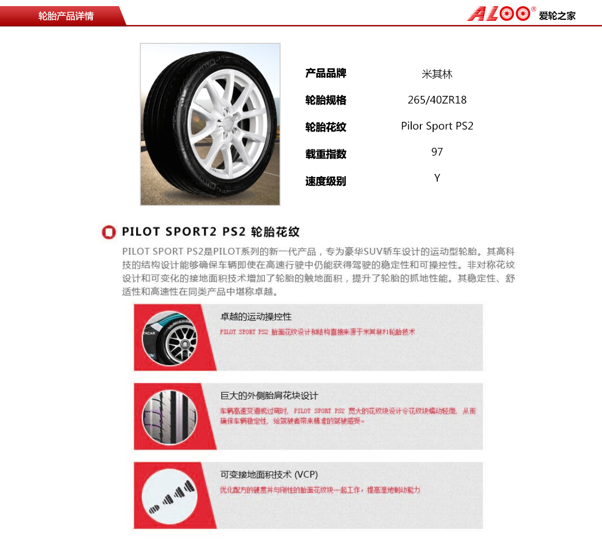 米其林 Pilot Sport PS2 ★ 带星 265/40ZR18 97Y_轮胎产品_爱轮之家 | 移动轮胎超市 | 移动换胎