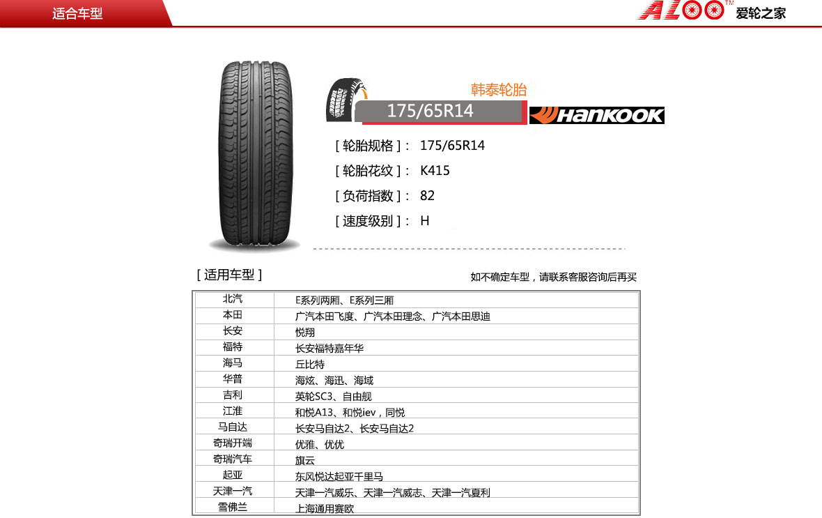 韩泰 K415 175/65R14_轮胎产品_爱轮之家 | 移动轮胎超市 | 移动换胎