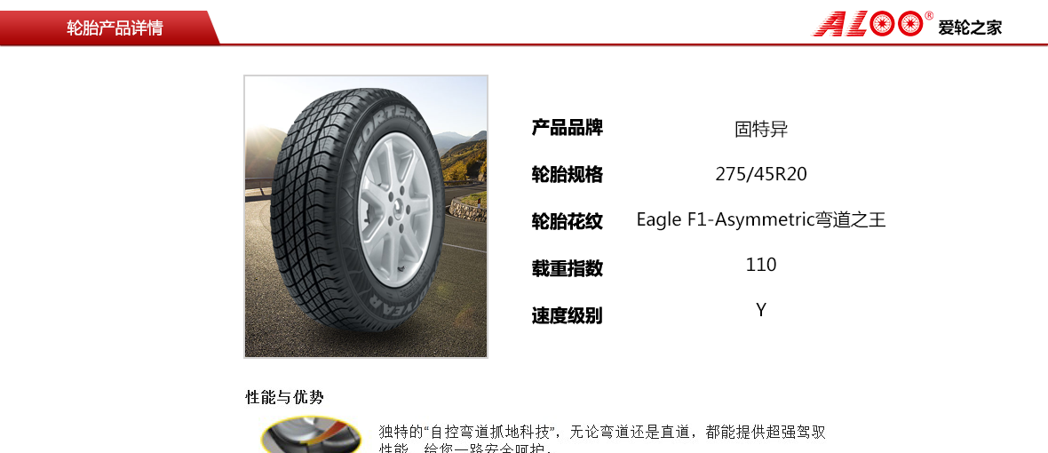 固特异 Eagle F1 Asymmetric弯道之王 275/45R20 110W_轮胎产品_爱轮之家 | 移动轮胎超市 | 移动换胎