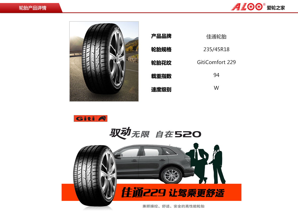 佳通 GitiComfort 229 235/45R18_轮胎产品_爱轮之家 | 移动轮胎超市 | 移动换胎
