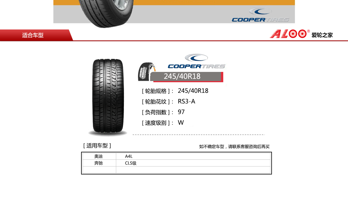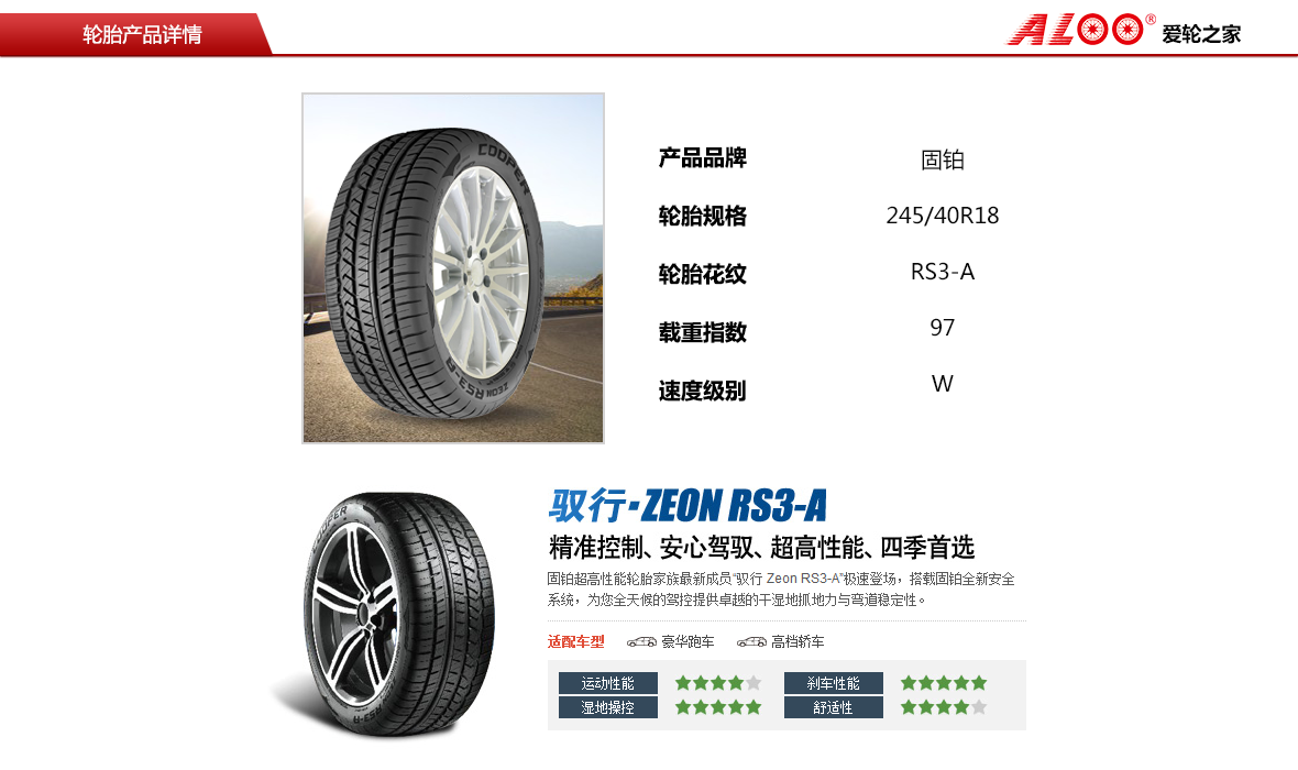 固铂 COOPER ZEON RS3‑A 245/40R18_轮胎产品_爱轮之家 | 移动轮胎超市 | 移动换胎