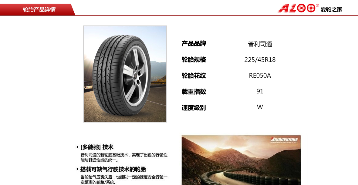 普利司通 RE050A 225/45R18_轮胎产品_爱轮之家 | 移动轮胎超市 | 移动换胎