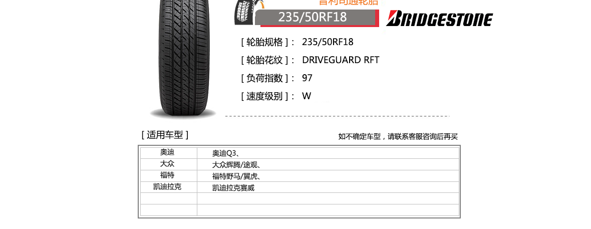 普利司通 DRIVEGUARD RFT 235/50RF18_轮胎产品_爱轮之家 | 移动轮胎超市 | 移动换胎