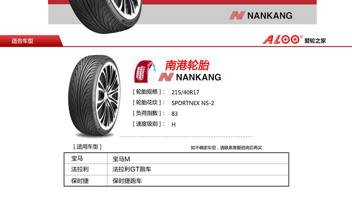 南港 NANKANG SPORTNEX NS-2 215/40R17_轮胎产品_爱轮之家 | 移动轮胎超市 | 移动换胎